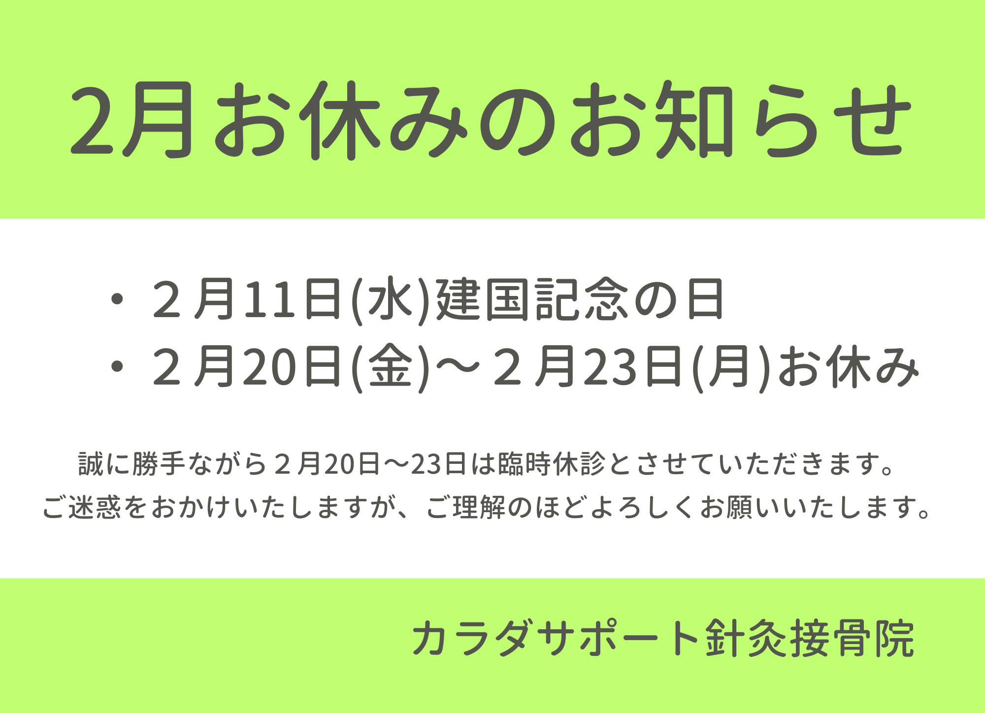 大変恐縮ではございますが、2026年2月20日(金)~23日(月)をお休みとさせていただきます。